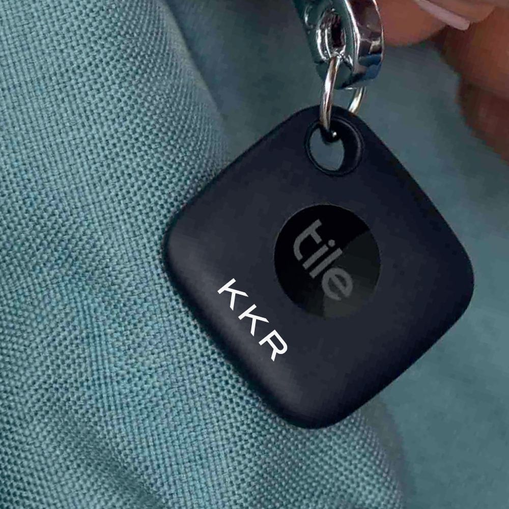 Tile Bluetooth trackers and the free Tile app for iOS and Adroid devices. Attach the Tile to your things, open the app and tap Find to locate your stuff. You can also double press the button on your Tile to ring and find your phone. Features your logo.