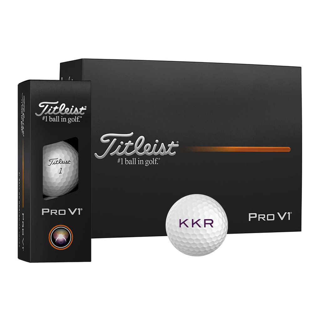 The Titleist Pro V1 delivers lower drive spin for longer distance, soft compression for outstanding feel and optimized aerodynamics for a more penetrating trajectory and the exclusive Drop-and-Stop greenside control. Three balls per sleeve. Four sleeves per box. One dozen balls per box. Your logo imprinted in Aubergine on each ball.